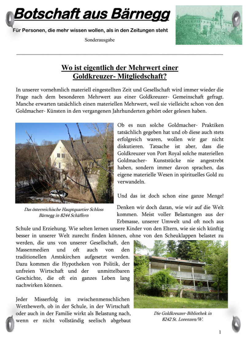 Sonderausgabe "Botschaft aus Bärnegg" - Arcturus Verlag